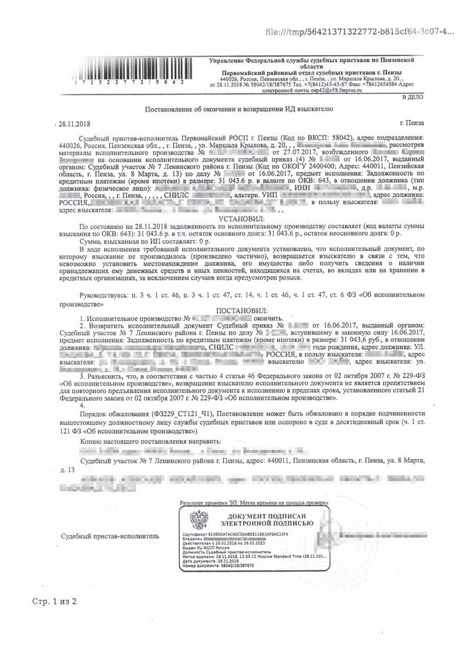 - Подлинность документа можно проверить на сайте ФССП