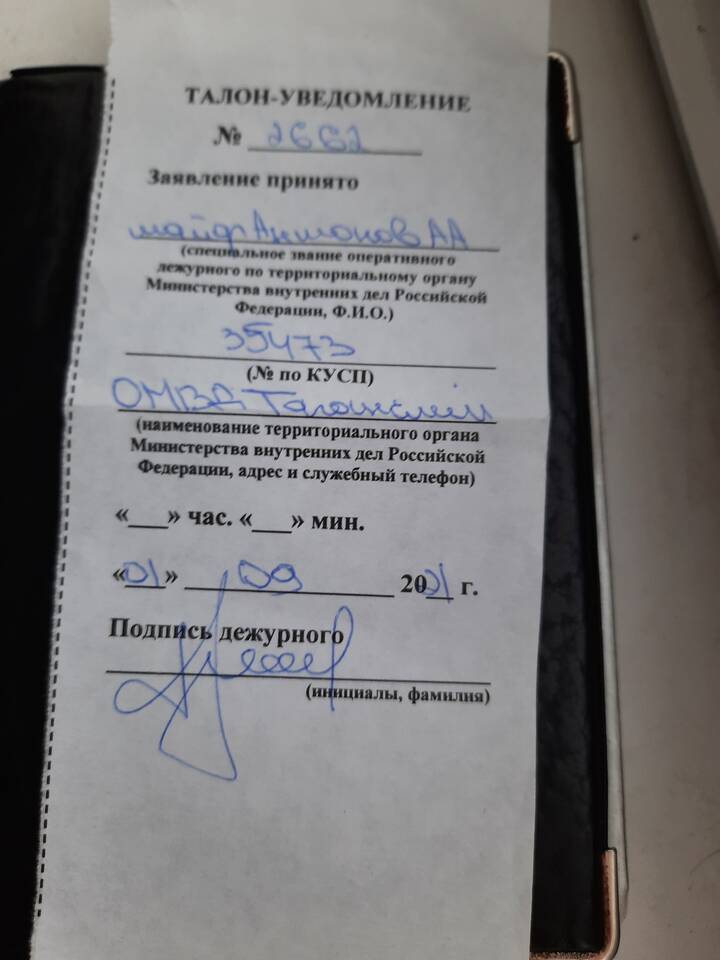 Шапка | Наименование отдела полиции, ФИО начальника, данные заявителя |
