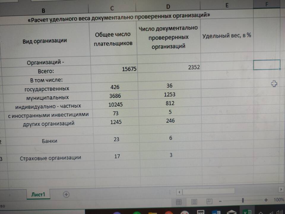 - Сумма всех удельных весов равна 100% (допустима погрешность 0.1% из-за округления)