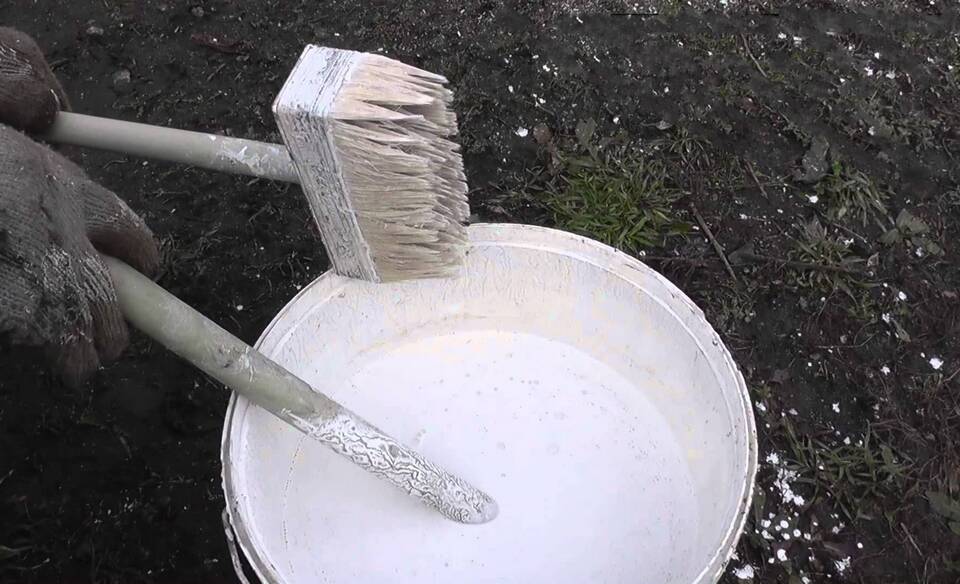 Побелка деревьев | 1 кг извести на 5 л воды + 100 г медного купороса |