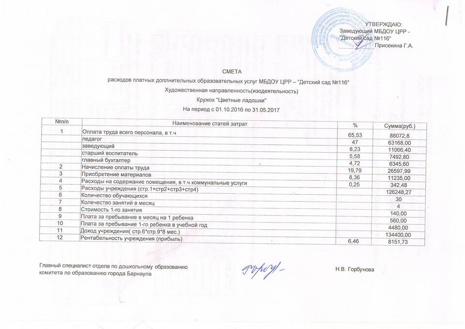 Основные разделы сметы