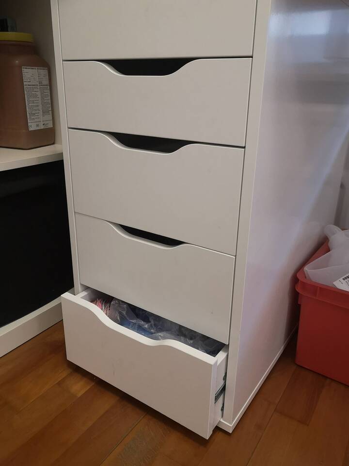 - Снимите выдвижные ящики: вытащите их полностью, затем отсоедините направляющие
