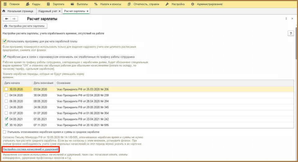 - Откройте раздел "Настройки" → "Расчет зарплаты"