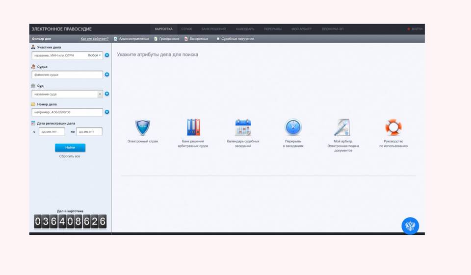 - Перейдите на сайт kad.arbitr.ru