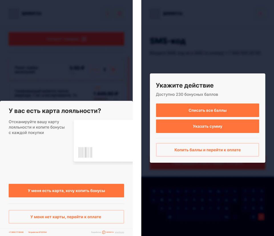 - Приложите карту лояльности или введите номер телефона, привязанный к программе