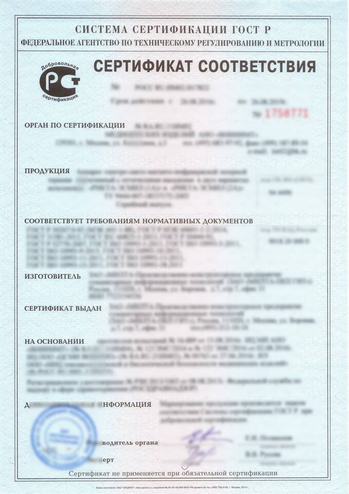 Обязательные элементы сертификата